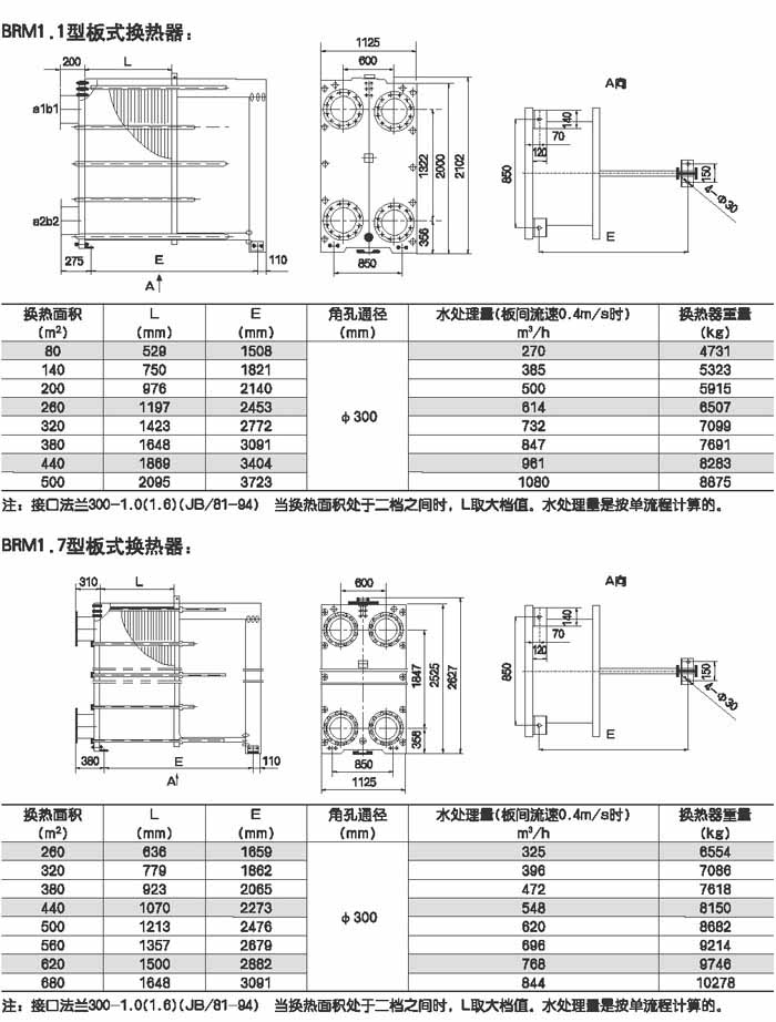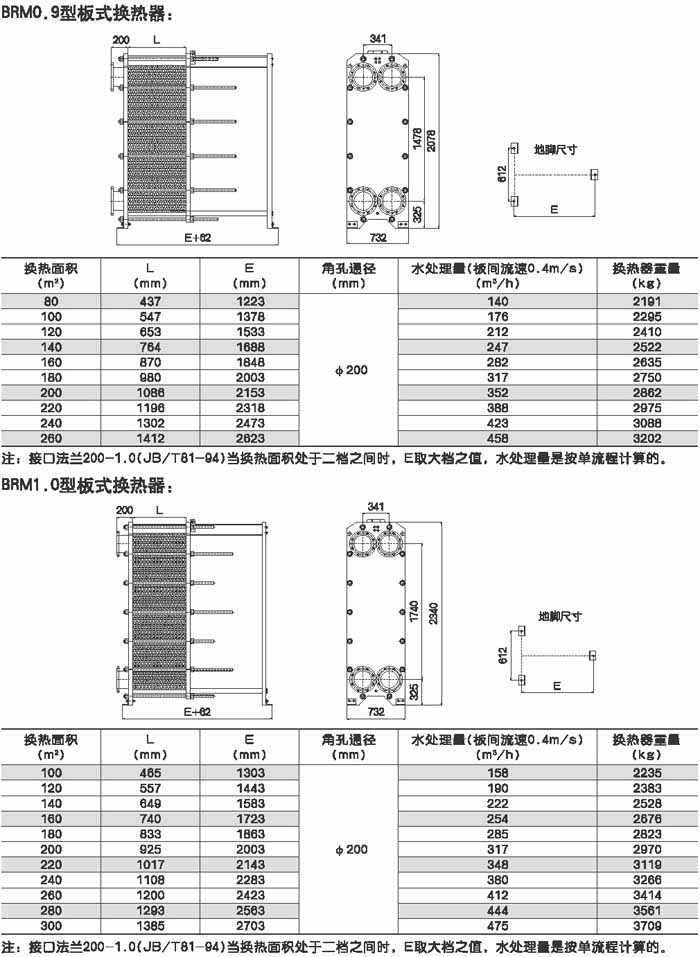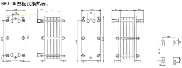 BRMO.0是指單片換熱板片的有效換熱面積為0.g平方米,其它型號的意義相同。選擇某種型號采用不同數(shù)量的換熱板片就可組裝成所需換熱面積的換熱器。